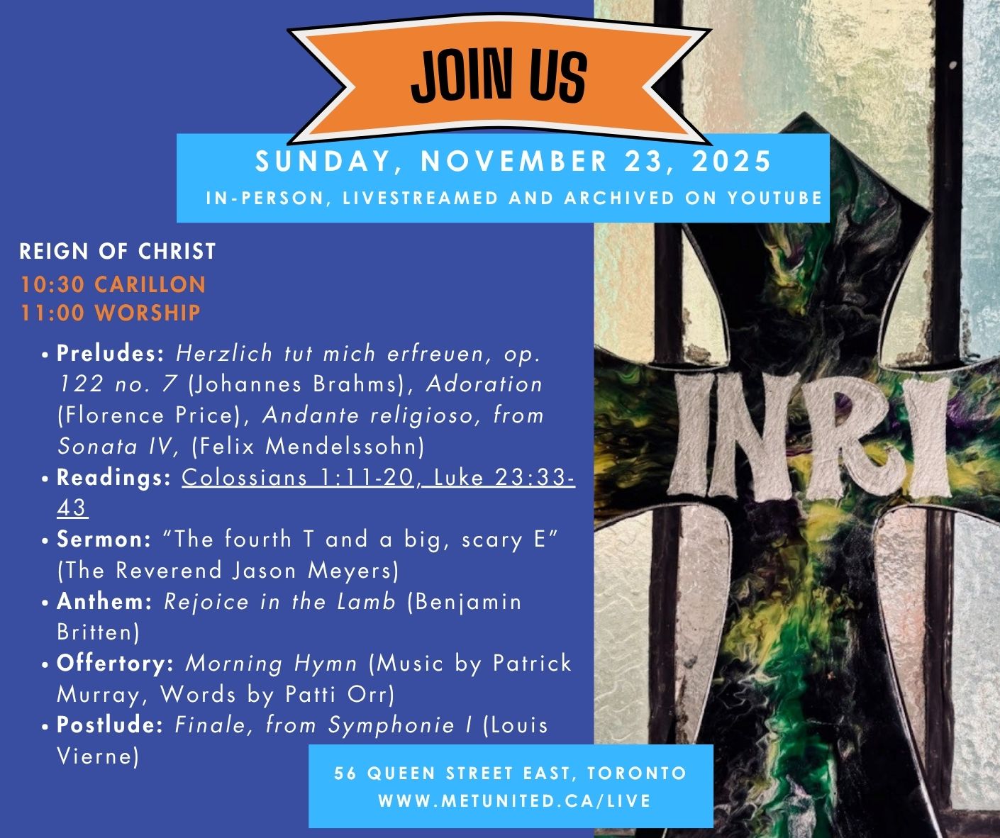 For many, music feeds the soul in ways that words or actions do not. Met is blessed with two magnificent instruments of national cultural significance: Canada’s largest pipe organ (1930, 5 manual Casavant organ with 7900+pipes in the Chancel and 400 pipes in the gallery) and the first tuned carillon in North America with 54 bells. Our musical inheritances are not museum pieces - they are foundational parts of a living, breathing, ever-changing community. With our instruments, choirs and the Metropolitan Silver Band - the only brass band connected to a United Church in the whole country - Met truly is a place for music!